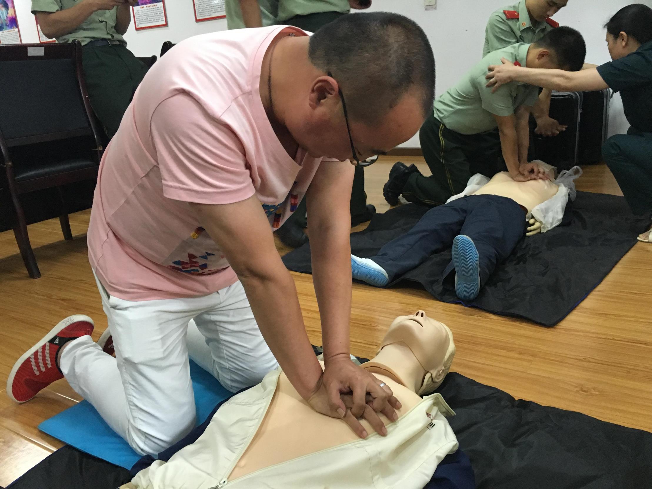此次培訓(xùn)特邀荊門市紅十字會(huì)工作人員就基本應(yīng)急救護(hù)知識(shí)進(jìn)行專業(yè)講解。培訓(xùn)現(xiàn)場采取用假人進(jìn)行模擬教學(xué),講師就心肺復(fù)蘇、創(chuàng)傷急救、止血等常見病害的救護(hù)前癥狀判定、實(shí)際救護(hù)方法及注意事項(xiàng)、救護(hù)成功的反應(yīng),尤其對尋找心肺復(fù)蘇的按壓點(diǎn)、按壓手勢方法、按壓頻率以及人工呼吸的注意事項(xiàng)等進(jìn)行了詳細(xì)講解。培訓(xùn)現(xiàn)場氣氛輕松活躍,參訓(xùn)人員紛紛參與實(shí)際操作,對假人進(jìn)行按壓、人工呼吸等救援操作。