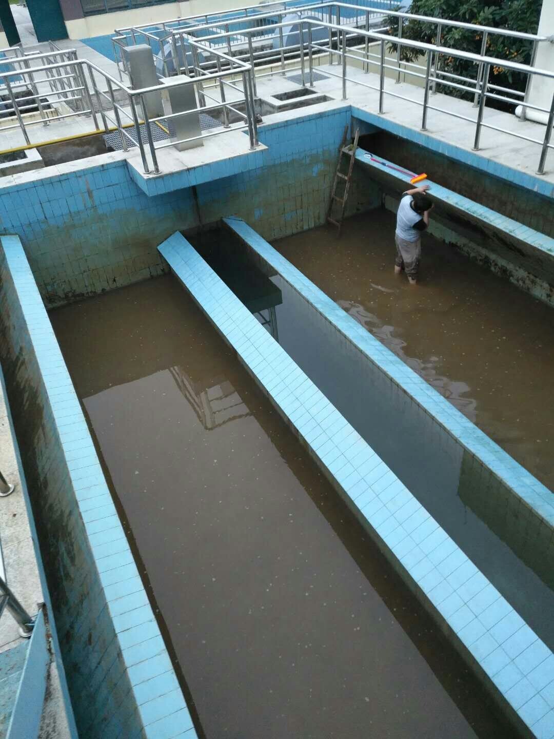 水廠濾池由于長時(shí)間不間斷運(yùn)行,給出水帶來污染。在為期2天的清洗工作中,工作人員在濾池中認(rèn)真鏟刮、清掃、沖洗濾池內(nèi)壁殘留不少淤泥、雜質(zhì)、青苔,清理過的濾池內(nèi)壁煥然一新。