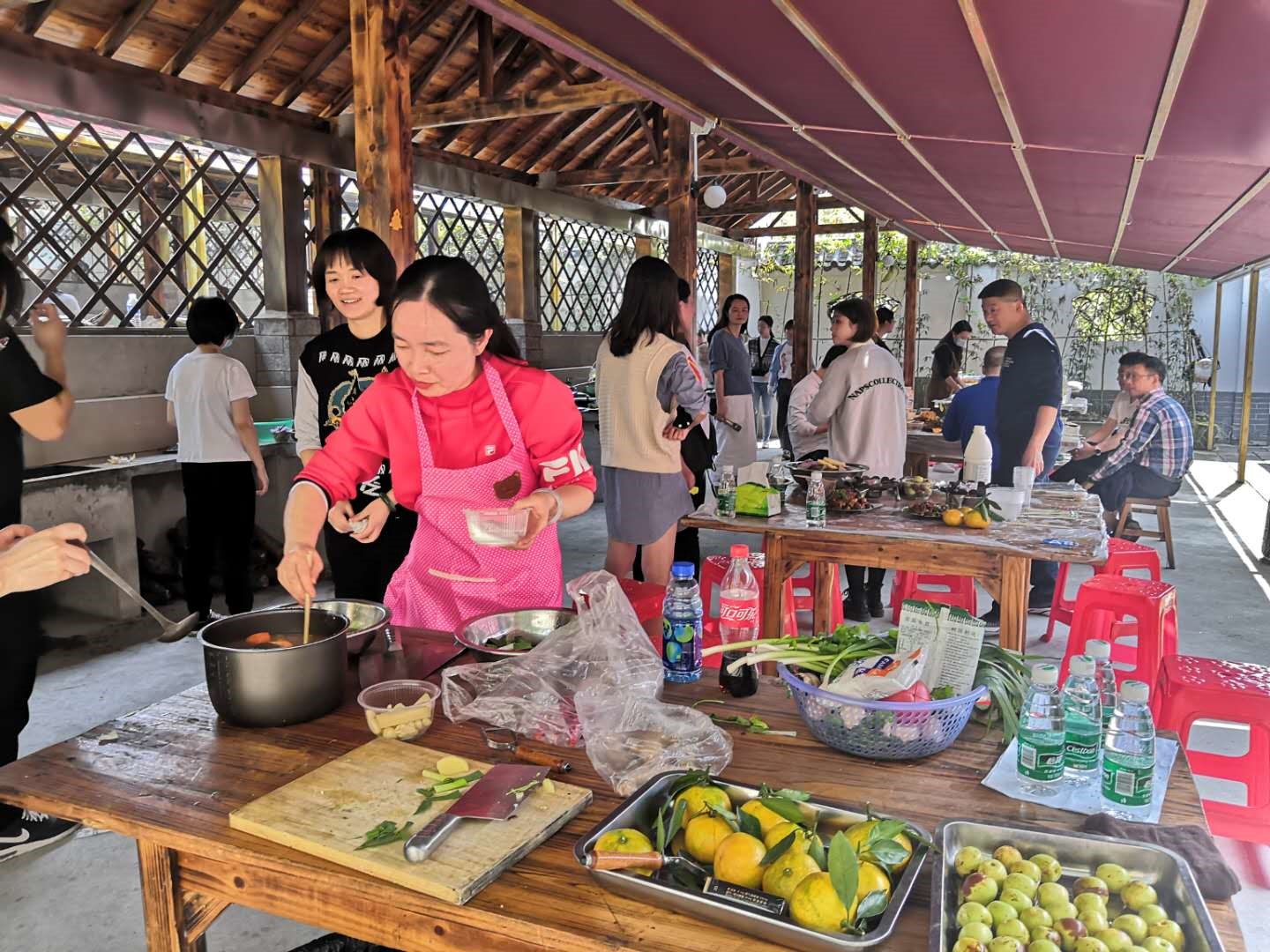 活動(dòng)現(xiàn)場(chǎng),大家以營(yíng)業(yè)大廳為小組進(jìn)行分工,有的摘菜剝蒜、有的切菜配菜、有的炒烹炸燜……灶臺(tái)前,烹飪高手們系上圍裙,擼起袖子把活干,互不相讓?zhuān)娂娛钩隹醇冶绢I(lǐng),看火候、賽功底,充分展示了她們嫻熟的廚藝,也讓大家看到了她們認(rèn)真工作以外的另一面精彩。