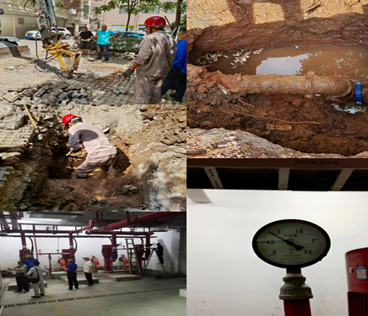 可正當(dāng)進行試壓時,小區(qū)消防控制中心卻傳來一個出人預(yù)料的“噩耗”,消防管網(wǎng)壓力居然為0,隱患仍未消除!看著滿身疲憊的“戰(zhàn)友們”,王經(jīng)理鼓勁到“大家先休息,我們再來想辦法。”集團相關(guān)部門獲悉情況后,由生產(chǎn)安全部攜手營抄中心和潤澤公司等多家單位,主動參與會戰(zhàn),同時致電消防部門給與技術(shù)指導(dǎo)。