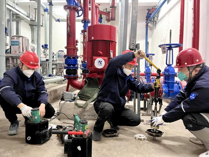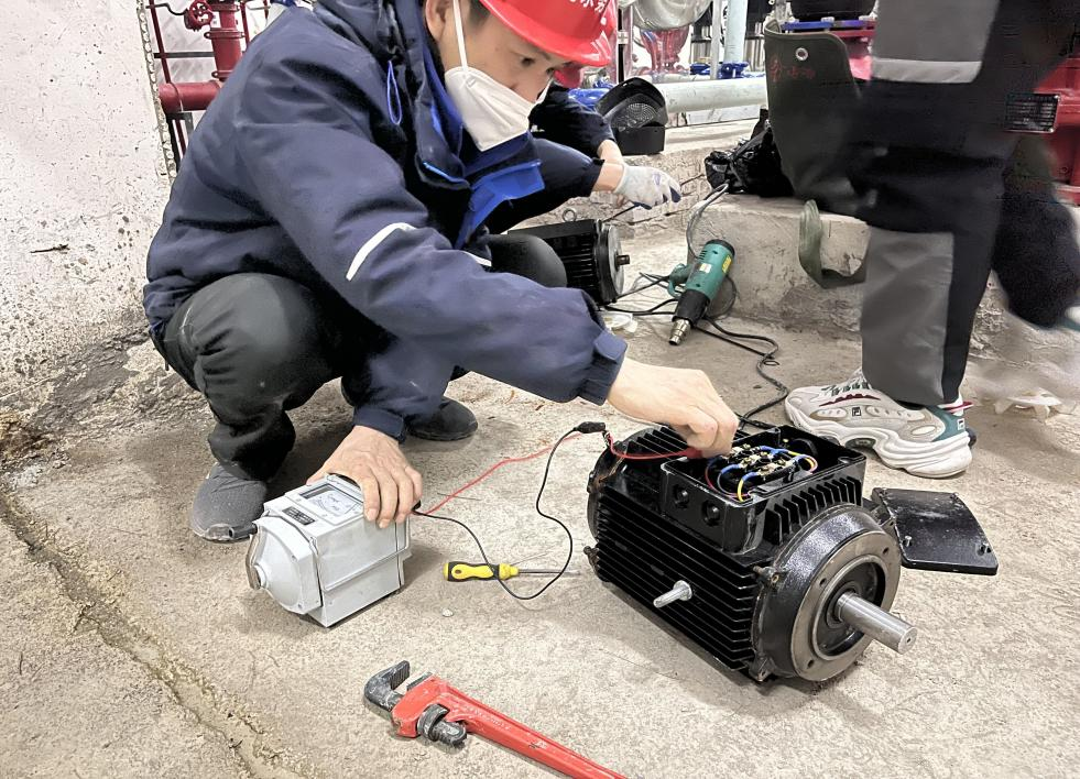 新年伊始,集團營抄中心接到電話求助,反映京奧·城市奧特萊斯廣場無水。維修人員立即響應,僅用6分鐘便趕赴現場。經初步排查,發(fā)現因泵房電機進水,自控系統(tǒng)失效、泵機不運作,導致無法供水。演練多日,用在一時。維修班長快速分工,班員們各司其職,迅速投入“戰(zhàn)斗”。一人操作控制系統(tǒng),兩人現場快速拆機,更換進水軸承,烘干定子線圈和轉子,對線圈進行絕緣處理,整個過程一氣呵成,有條不紊。三人同步作業(yè),最終僅耗時4個多小時,完成6臺電機搶修,恢復了供水。24小時后,維修人員再探現場,復查數據參數和供水壓力,加固所有連接件,確保萬無一失。