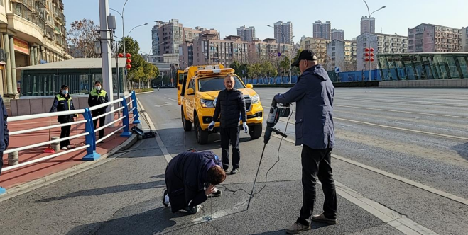 圖為管網(wǎng)運(yùn)維部周洪濤、靳華東、武化飛在象山大道與漳河大道交叉路口查漏