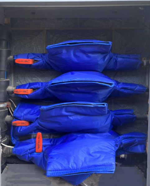 沒有調(diào)查,就沒有發(fā)言權(quán)。2022年,集團通過“線上+線下”調(diào)研,對比試用多款防護套后,鎖定最優(yōu)款--“小藍襖”。這款防護套選用牛津布填充白絲棉,雙面防水,全方位包裹,安裝簡便,保溫效果絕佳。最讓人稱道的是,它自帶的魔術(shù)貼口和預留孔洞完美解決了前述問題,非常易于查看水表和日常維保。