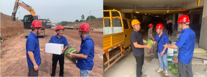 7月13日上午,水務(wù)集團(tuán)潤澤建設(shè)工程有限公司(以下簡稱潤澤公司)黨員領(lǐng)導(dǎo)干部到施工現(xiàn)場,開展“送清涼”活動。