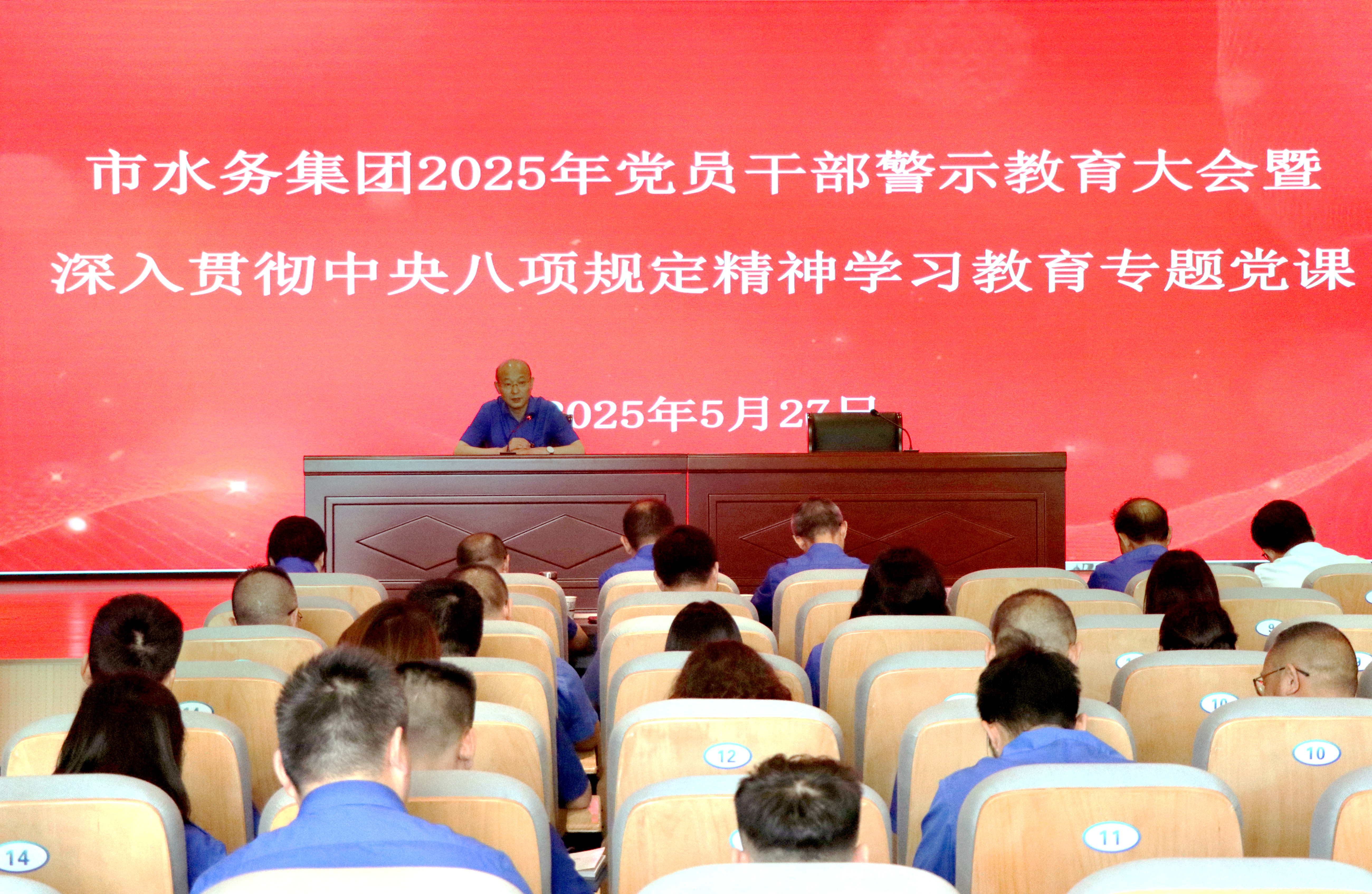 按照省、市關(guān)于深化中央八項規(guī)定精神學(xué)習(xí)教育相關(guān)要求,5月27日上午,市水務(wù)集團(tuán)召開黨員干部警示教育大會暨深入貫徹中央八項規(guī)定精神學(xué)習(xí)教育專題黨課。會議組織觀看警示教育片,集團(tuán)黨委書記、董事長陳永根講授專題黨課,集團(tuán)黨委委員、紀(jì)委書記劉高軼主持會議。集團(tuán)全體高層領(lǐng)導(dǎo)、中層干部及機(jī)關(guān)黨員參加會議。