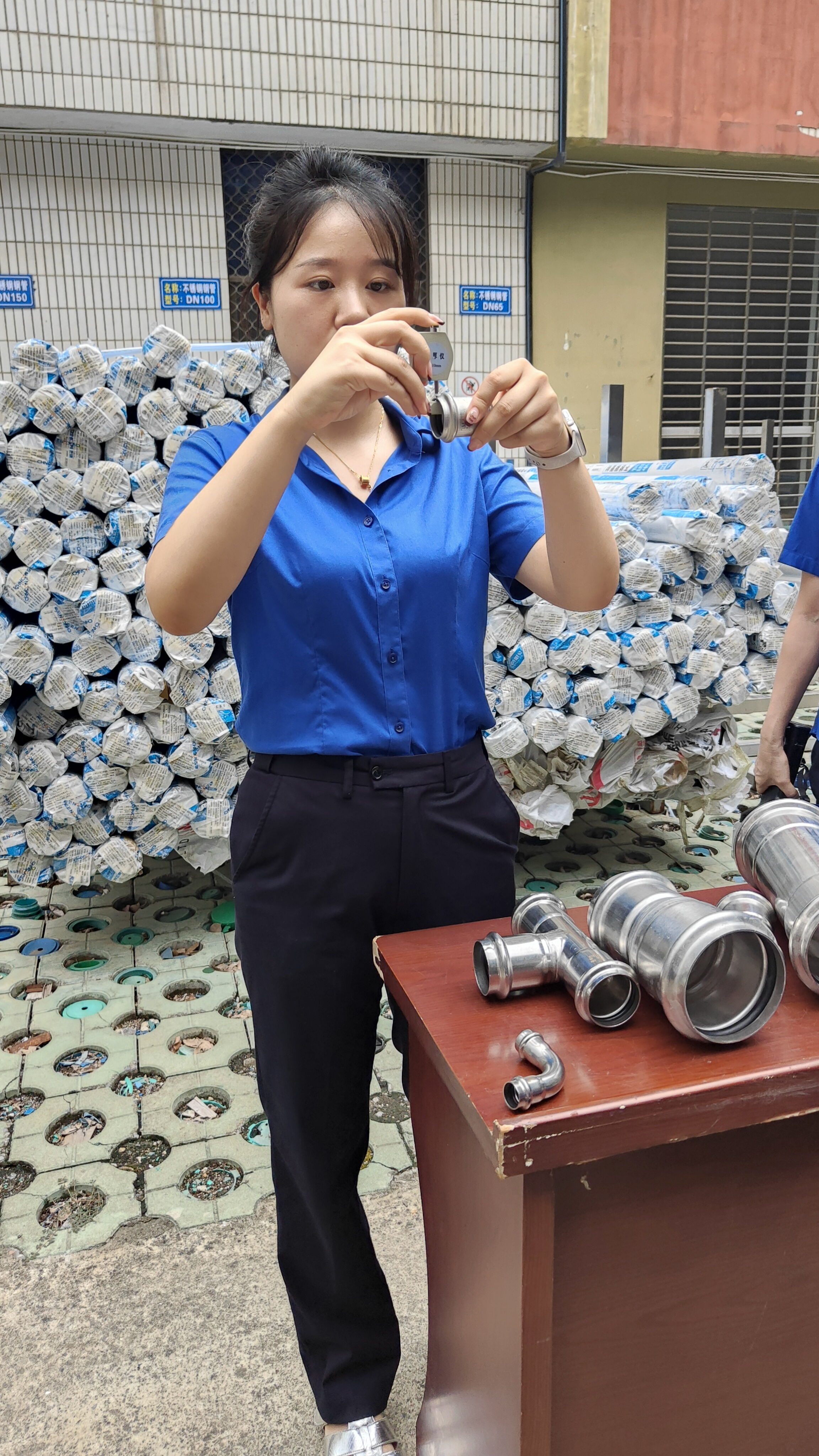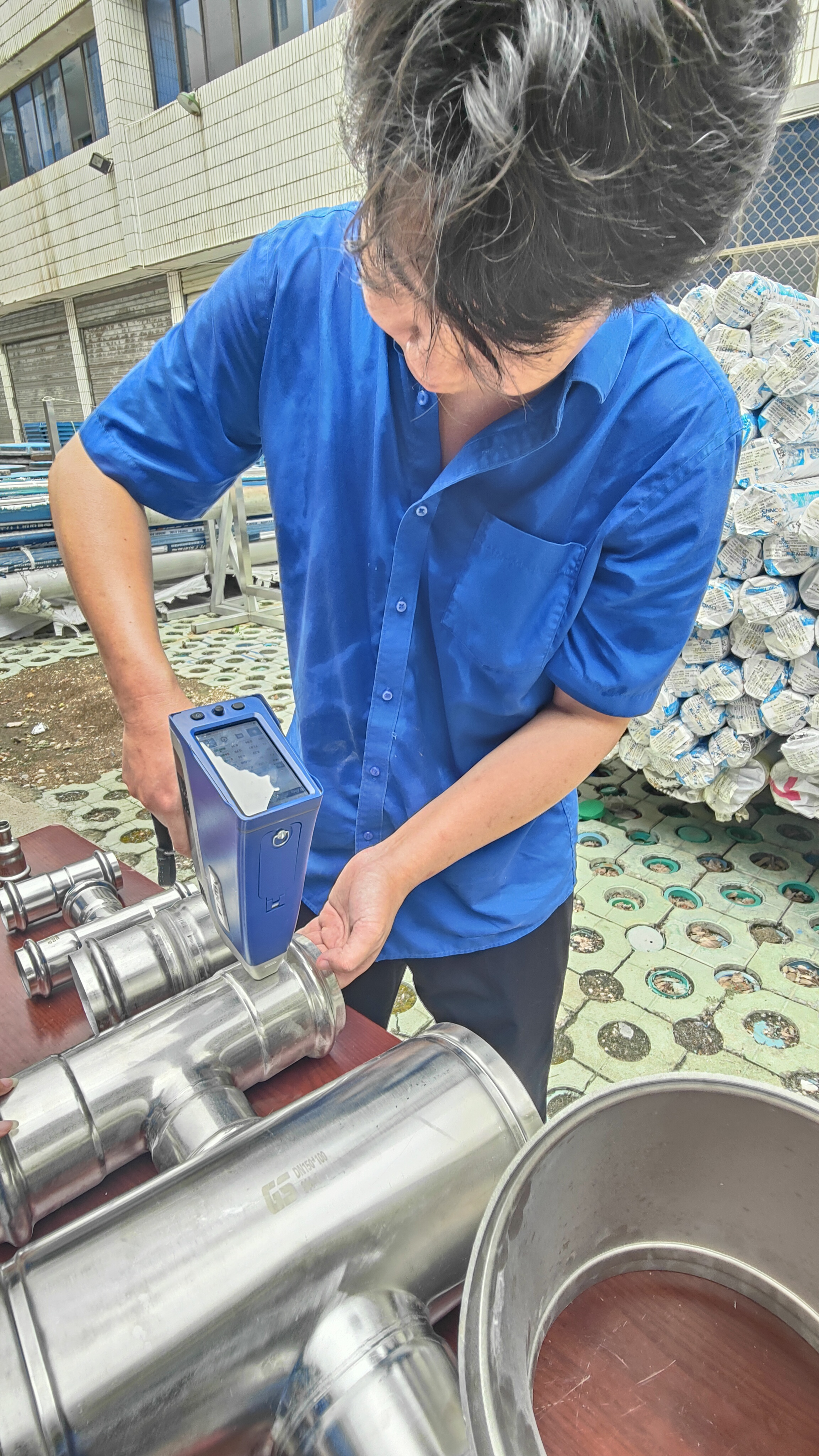 在實操比武環(huán)節(jié),參賽人員按流程對各類型號管件進行鑒別與檢驗:運用手持光譜儀檢測不銹鋼材質(zhì)成分,確認是否符合不銹鋼304標(biāo)準(zhǔn);使用測厚儀測量管件壁厚,嚴格把控尺寸偏差;用卷尺測量長度,核對與標(biāo)準(zhǔn)值的誤差。整個比武過程規(guī)范有序,參賽人員嚴謹操作,展現(xiàn)了扎實的驗質(zhì)功底。