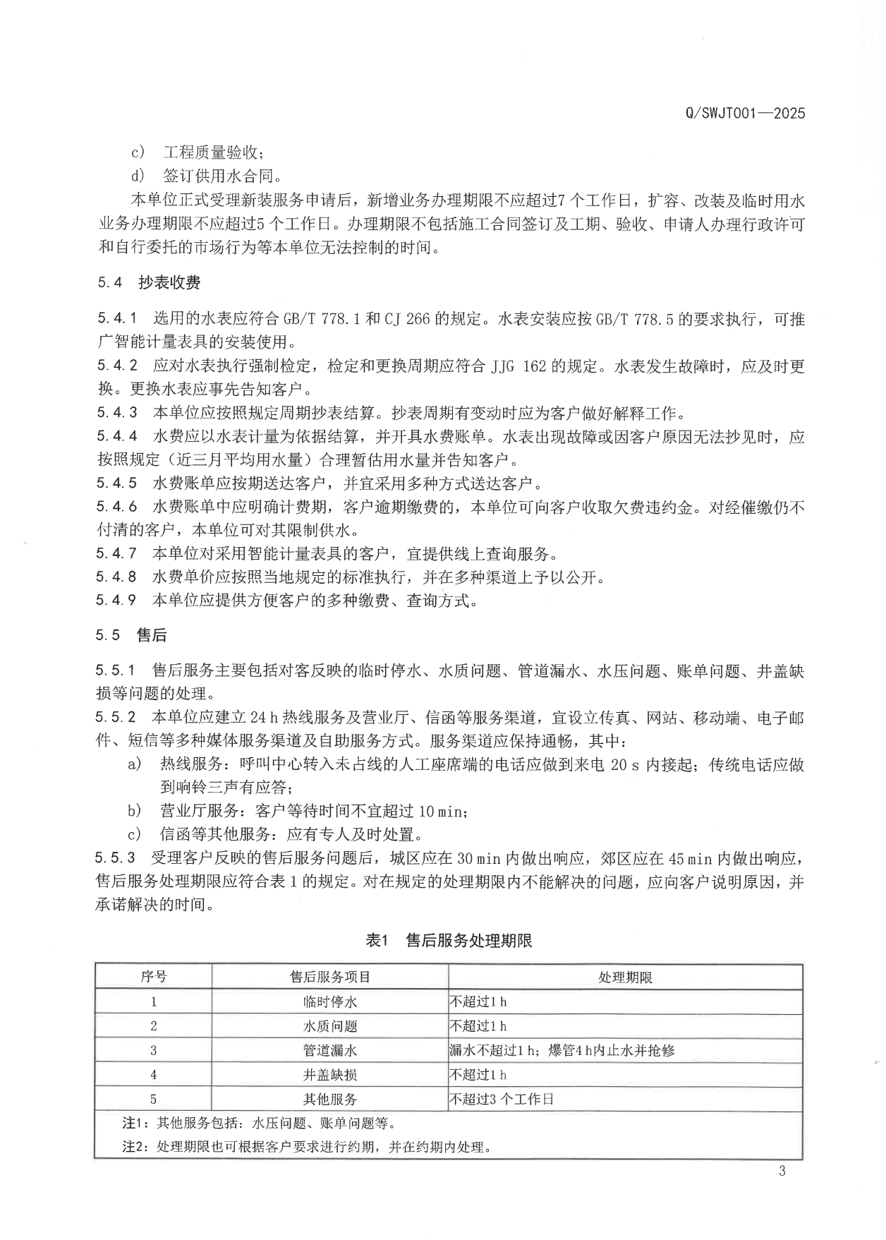 荊門水務(wù)集團企業(yè)標準——供水服務(wù)
