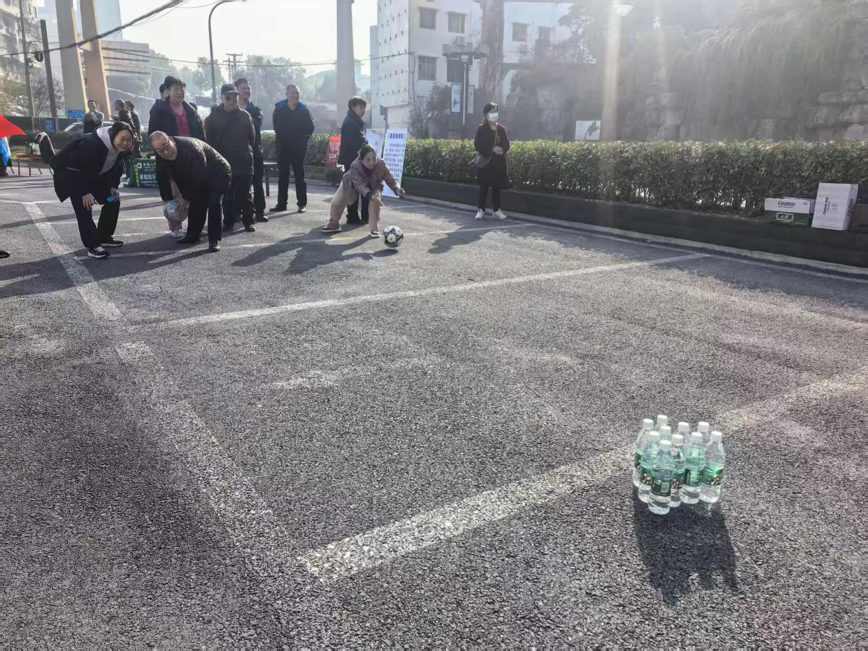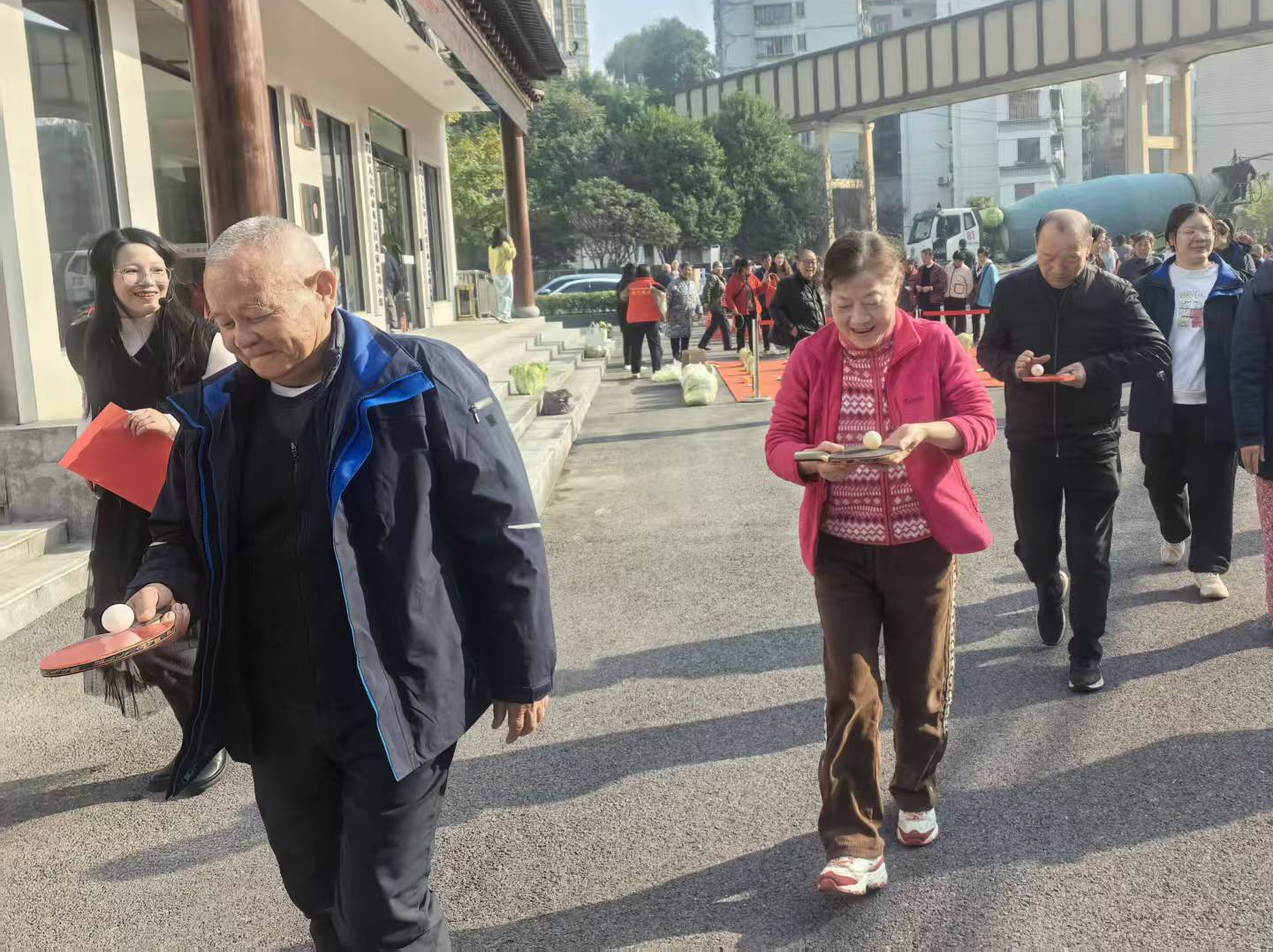趣味保齡球項(xiàng)目中,老人們瞄準(zhǔn)塑料瓶陣滾球,擊倒瓶子時(shí)的歡呼聲此起彼伏;歡樂(lè)套圈前,大家瞄準(zhǔn)蔬菜、油鹽醬醋等生活物資投擲,有人接連套中獎(jiǎng)品,開心得像個(gè)孩子;球拍托球健步走環(huán)節(jié),老人們小心翼翼托球前行,現(xiàn)場(chǎng)滿是歡聲笑語(yǔ)。