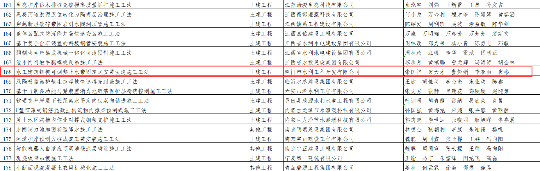 喜報(bào)!荊門市水利工程開發(fā)有限公司工法成果獲評(píng)2025年部級(jí)水利行業(yè)工法