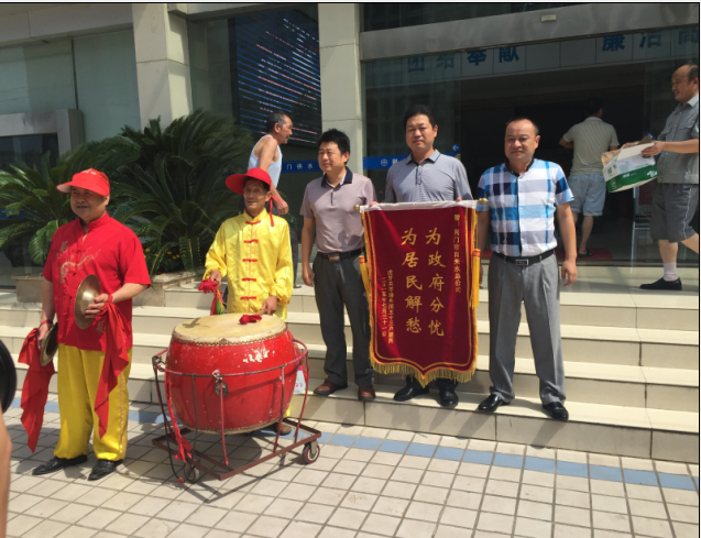 7月31日,虎牙關(guān)社區(qū)和用戶代表組織腰鼓隊到總公司送錦旗致謝。據(jù)悉,掇刀城南新區(qū)金苑大市場主、分水管網(wǎng)嚴(yán)重老化,水管破損而致停水。市供水總公司客服部門快速勘測報裝,維修處迅速組織施工,并調(diào)派應(yīng)急供水車在改造期間為商戶送水。