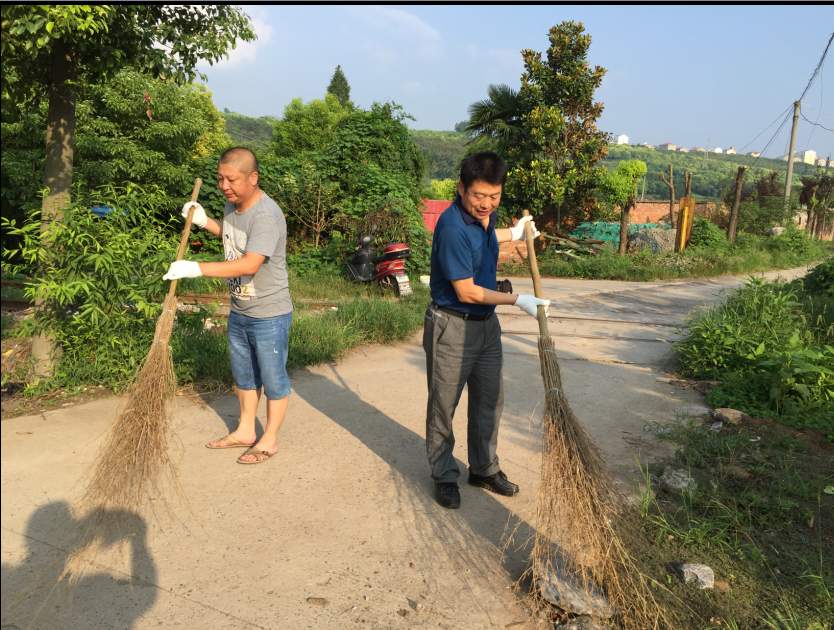 813日,烈日炎炎,公司黨委副書記、紀(jì)委書記、工會主席徐黎明帶領(lǐng)辦公室、物業(yè)公司相關(guān)人員,利用周休時間,支持社區(qū)創(chuàng)衛(wèi)工作,對社區(qū)毛湖沖居民點(diǎn)道路進(jìn)行衛(wèi)生清掃,對陳年垃圾丟棄點(diǎn)進(jìn)行集中清理。圖為清掃現(xiàn)場。
