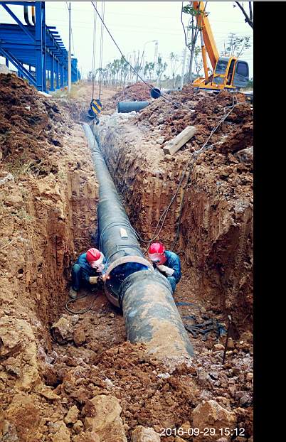 盈德氣體是荊門石化油品升級改造配套項目,是荊門市委、市政府重點招商引資項目,落戶于化工循環(huán)產(chǎn)業(yè)園。為服務好化工循環(huán)產(chǎn)業(yè)園,荊門市供水總公司19日接到鋪設盈德氣體專用DN600供水管道施工任務后,打破常規(guī),當晚就安排人員、分解任務;920日上午完成施工隊伍組織,工地測量、工程材料采購,下午立即進場溝槽開挖。施工期間正逢207外環(huán)線與陽光大道部分路段封閉改造,公司積極與道路改造方協(xié)調(diào),利用每天道路施工間歇,將20根鋼管100根球墨管順利運轉(zhuǎn)至工地。為了能在預定時間內(nèi)完成任務,工人每天早晨5點半進入施工現(xiàn)場,一直到晚上10點施工結(jié)束,中午不休息,早、中、晚三餐就在現(xiàn)場吃快餐。十天鋪通盈德氣體專用840DN600供水管道。