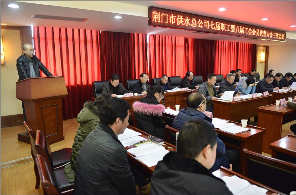 會(huì)議在莊嚴(yán)的國(guó)歌聲中開(kāi)幕。公司黨委書(shū)記、總經(jīng)理陳永根作了《2016年度公司工作報(bào)告》,認(rèn)真總結(jié)了2016年度取得的各項(xiàng)成績(jī);供水設(shè)施建設(shè)投資體制理順、5條道路供水管道改遷提前完成、國(guó)賓酒店環(huán)評(píng)獲批;管黨治黨高度前所未有、項(xiàng)目建設(shè)力度規(guī)模空前、公司主輔業(yè)產(chǎn)值連續(xù)五年雙過(guò)億,總額首次突破3億元等。客觀分析了當(dāng)前企業(yè)發(fā)展存在的機(jī)會(huì)和挑戰(zhàn),并對(duì)2017年度的工作作出了展望。黨委委員、工會(huì)主席馬兆芳,黨委委員、總會(huì)計(jì)師劉高軼分別作了《2016年度工會(huì)委員會(huì)工作報(bào)告》、《荊門(mén)市供水總公司2016年度財(cái)務(wù)預(yù)算執(zhí)行及2017年財(cái)務(wù)預(yù)算草案編制報(bào)告》、《荊門(mén)市供水總公司2016年度工會(huì)經(jīng)費(fèi)執(zhí)行及2017年工會(huì)經(jīng)費(fèi)預(yù)算情況報(bào)告》。職工代表提案審查小組組長(zhǎng)卞軍虎對(duì)七屆職工暨八屆工會(huì)會(huì)員代表大會(huì)二次會(huì)議職工代表提案辦理情況作了報(bào)告,七屆職工暨八屆工會(huì)會(huì)員代表大會(huì)二次會(huì)議共收到34份職工提案,實(shí)際需要回復(fù)和辦理的提案為32,已辦結(jié)的有27份,正在落實(shí)的5份,報(bào)告中對(duì)正在落實(shí)的提案進(jìn)行了說(shuō)明。工會(huì)副主席張春生對(duì)本次會(huì)議征集職工代表提案作了報(bào)告,本次會(huì)議共收到19份提案,其中涉及經(jīng)營(yíng)管理的5份,技術(shù)改革的1份,教育培訓(xùn)的1份,薪資福利待遇的12份。會(huì)議期間,與會(huì)代表給予六個(gè)報(bào)告充分肯定,圍繞各項(xiàng)工作報(bào)告,進(jìn)行了熱烈討論,提出了許多寶貴的建議和意見(jiàn)。