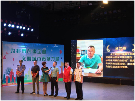 漳河是荊門人民的母親河。從事供水事業(yè)近30年以來(lái),無(wú)論酷暑嚴(yán)寒、刮風(fēng)下雨,林文峰堅(jiān)持每天巡查水源保護(hù)區(qū),帶領(lǐng)水廠員工清理取水口周邊雜物,確保水源干凈整潔和供水安全優(yōu)質(zhì)。頒獎(jiǎng)典禮上,林文峰現(xiàn)場(chǎng)講述了近二十年持之以恒的水源地環(huán)保行動(dòng),樸實(shí)無(wú)華卻震撼心靈,為廣大市民樹(shù)立了環(huán)保典范。
