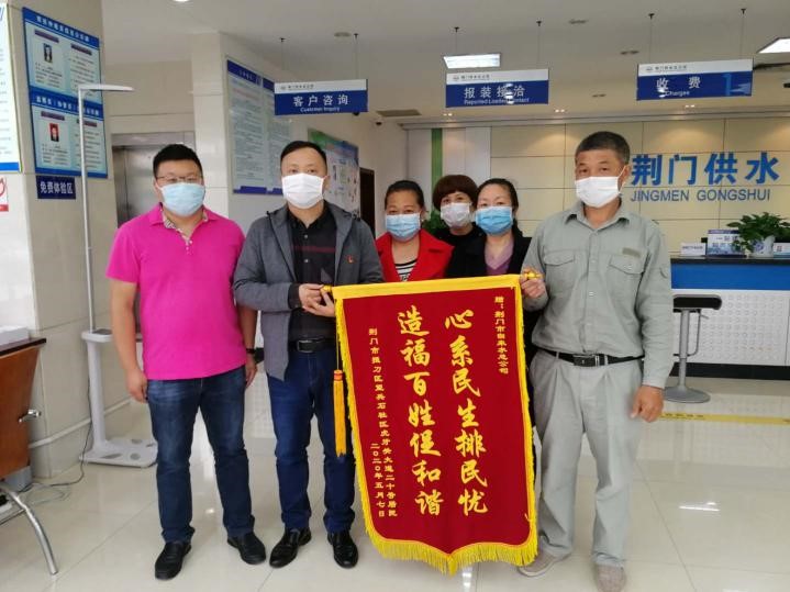 據(jù)了解,兩個(gè)家屬區(qū)位于虎牙關(guān)大道20號(hào),共有近百戶居民。昨日記者采訪時(shí),兩家屬區(qū)居民都很高興,小區(qū)居民代表文后華專門買來了一箱純凈水,發(fā)給在場(chǎng)的記者和市供水總公司工作人員喝,欣喜之情溢于言表。隨后,文后華還將寫有“心系民生排民憂 造福百姓促和諧”的錦旗送給市供水總公司。