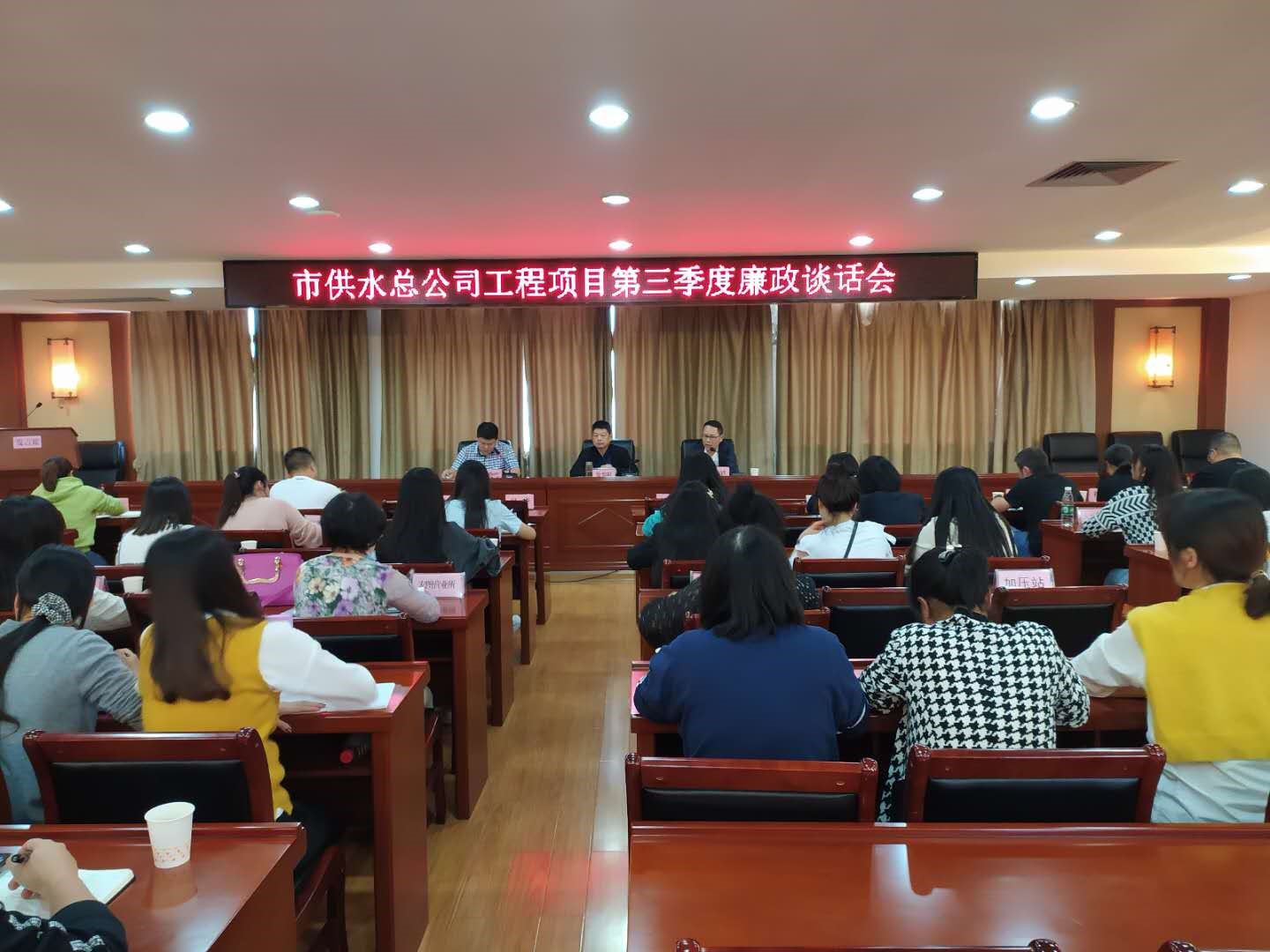 為進一步做好財務(wù)工作,提高財務(wù)人員廉政意識,防范財務(wù)風(fēng)險,9月24日下午,市供水總公司舉行工程項目(財務(wù)管理方面)第三季度廉政談話會。公司黨委副書記、紀(jì)委書記徐黎明主持會議,黨委委員、總會計師劉高軼進行廉政談話,總公司財務(wù)部全體工作人員、各獨立核算二級單位財務(wù)分管負責(zé)人和全體財務(wù)人員、非獨立核算二級單位和機關(guān)各部門報賬員,公司紀(jì)委委員、各支部紀(jì)檢委員參加會議。