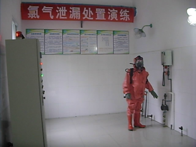 一水廠組織氯氣泄漏處置演練